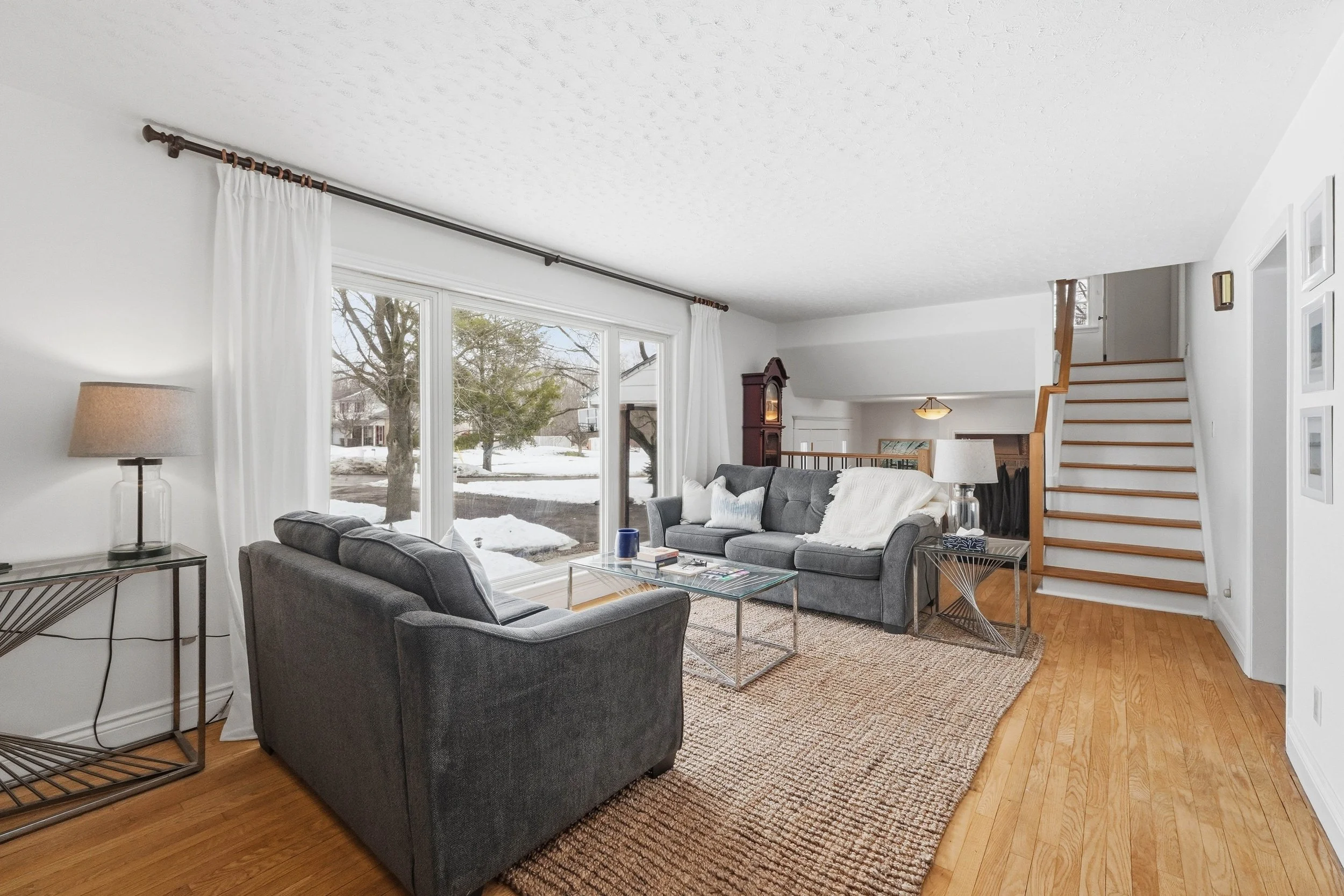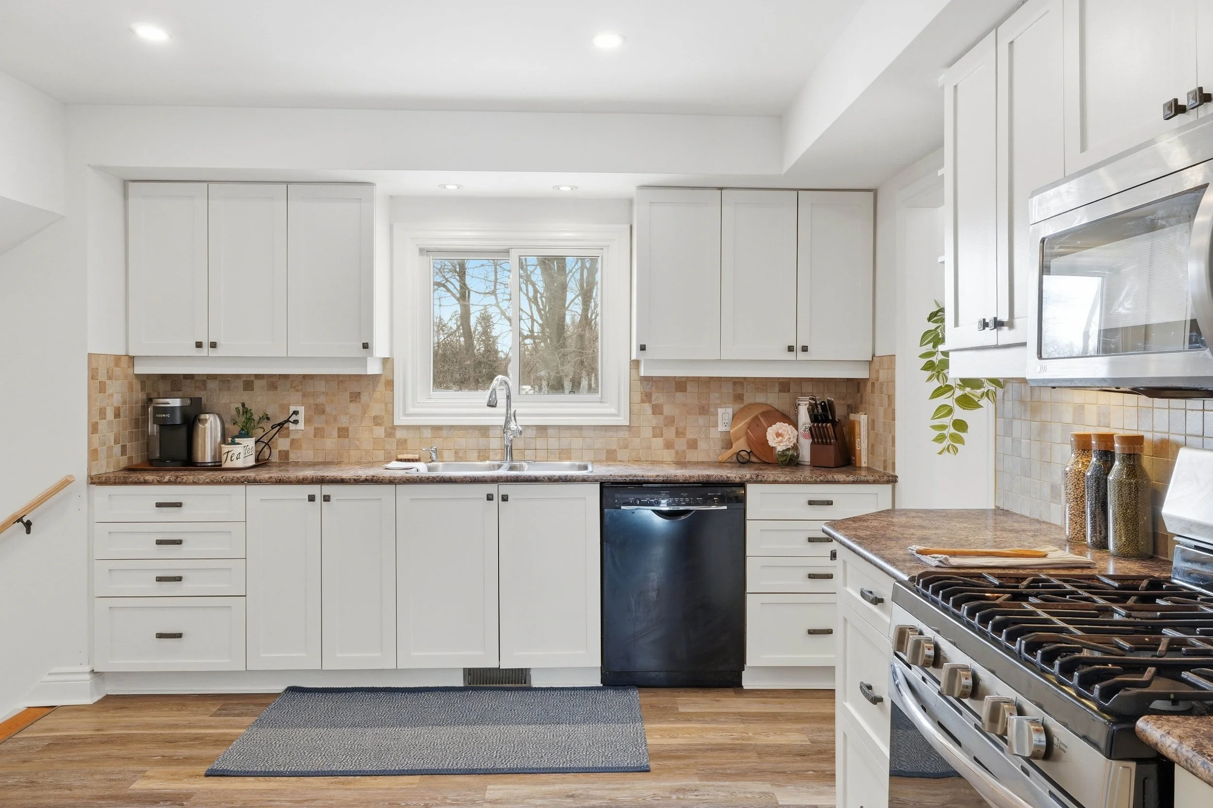 Inside, the home feels bright, welcoming, and designed for real life. The spacious main floor features a cozy living room with a new gas fireplace and large picture window overlooking the river. A formal dining area flows easily into the timeless white kitchen, complete with ample cabinetry and generous counter space for everyday cooking or weekend hosting. At the back of the home, a sun-filled family room with patio doors opens directly to the backyard, creating a natural connection between indoor comfort and outdoor living.