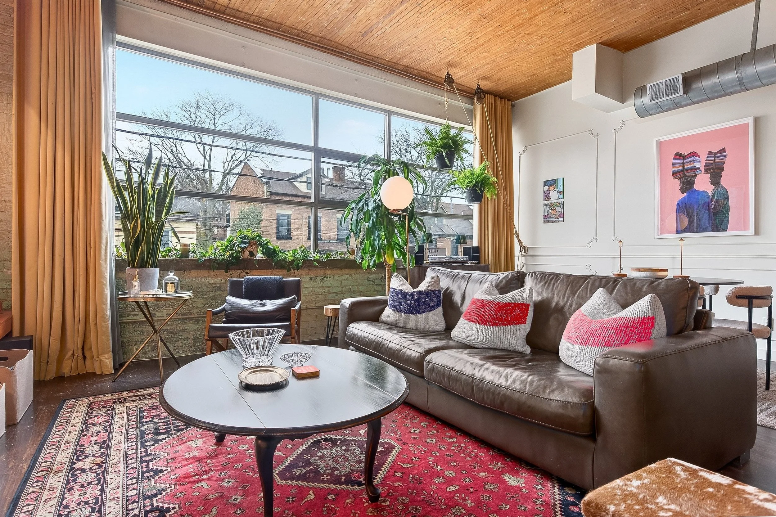 This true industrial space at Century Lofts is exactly that. A space that feels like it’s been lived in, worked in, layered over time. The kind of place where the materials do the talking. Concrete floors underfoot, softened just enough with a wood grain finish. Walls that don’t need much. And windows that stretch wide, pulling the city in and changing with the light throughout the day.