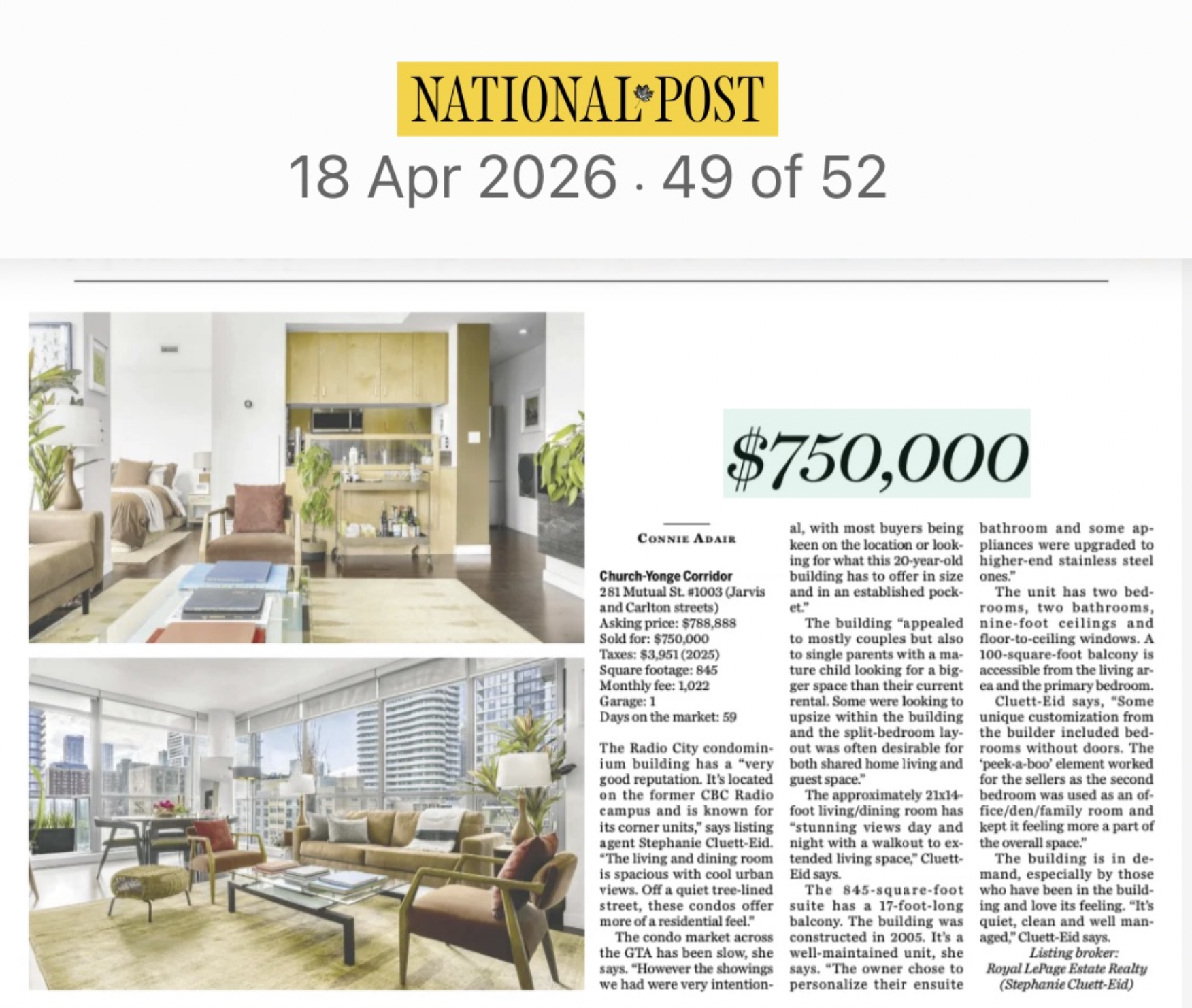 National Post: Featured Listing - 281 Mutual St, Suite 1003