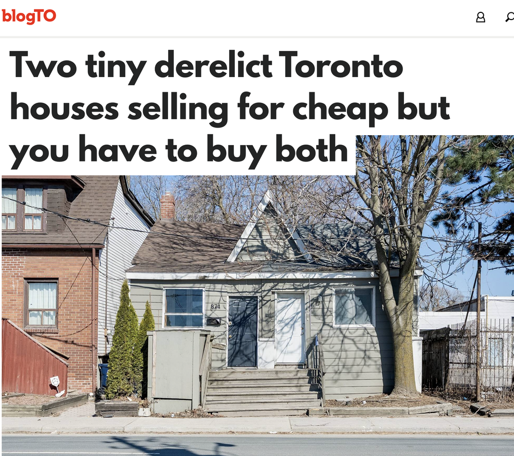 BlogTO: Two tiny derelict Toronto houses selling for cheap but you have to buy both